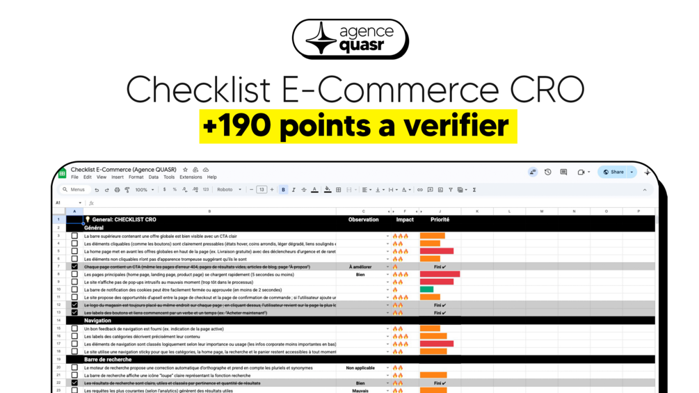 Checklist E-Commerce CRO (+190 points)